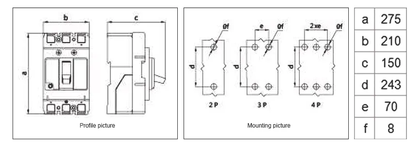 Автоматический выключатель в литом корпусе MCCB, вид спереди